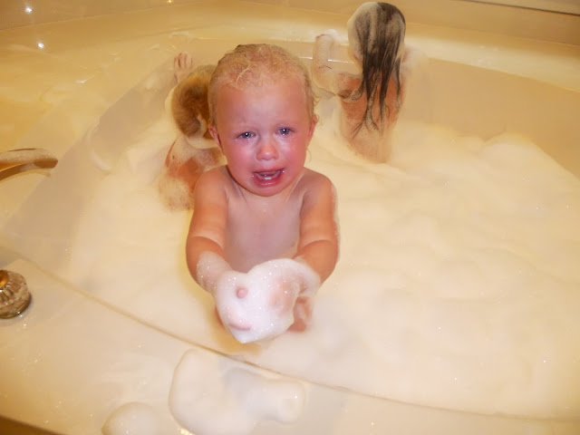 One day after a short, cool swim (due to rain) the kids took a bubble bath in Mimi's bathroom.